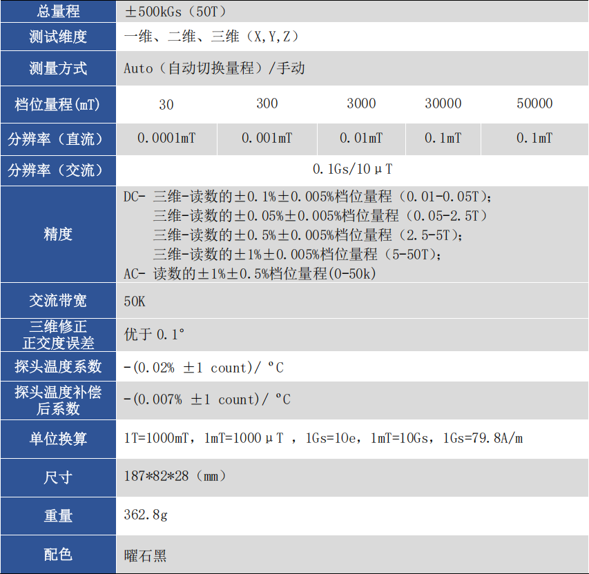 - 手持/臺式高斯計、特斯拉計、磁通計、磁通門計、霍爾探頭;